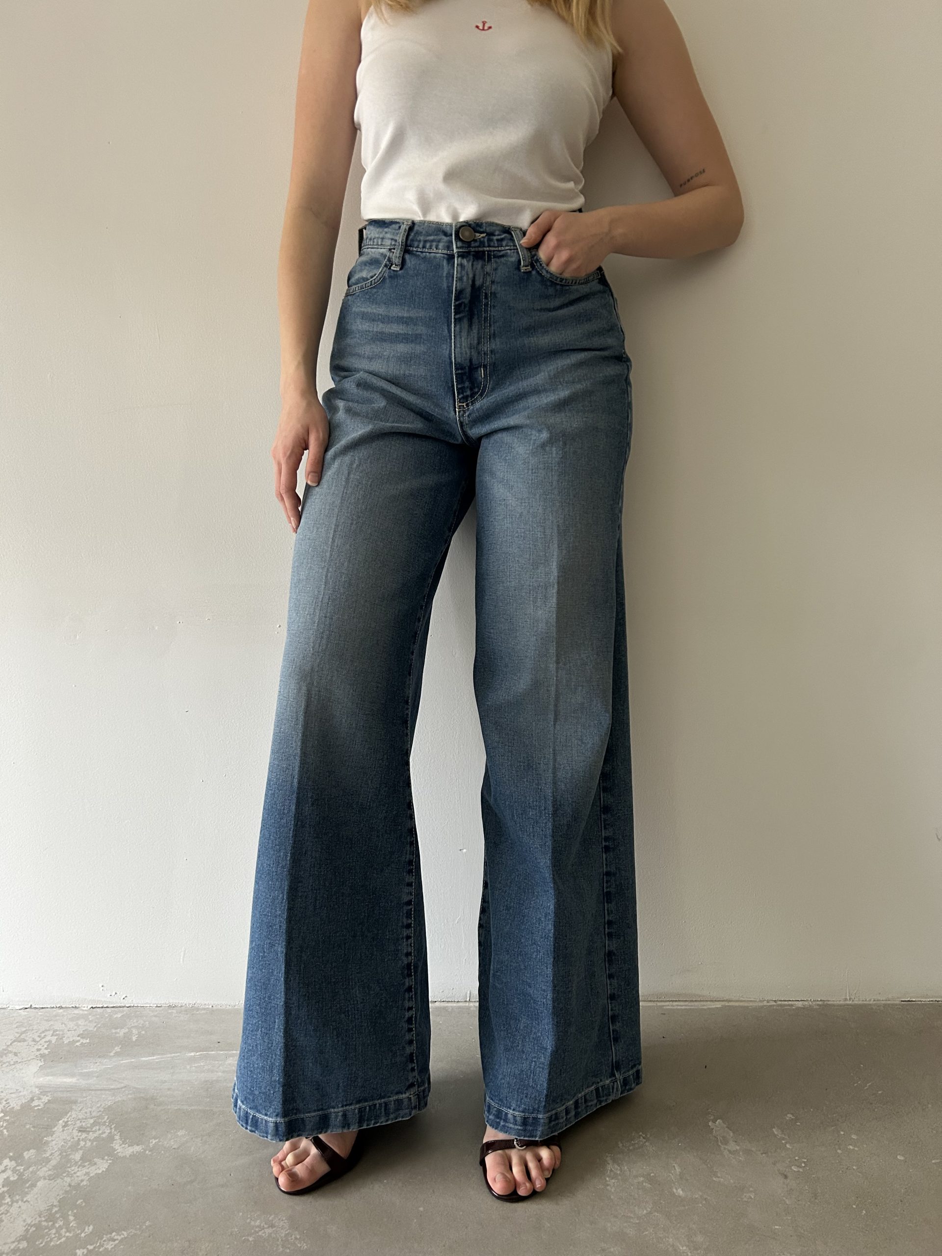 Jeans ANITA modello a palazzo, vita alta. Vestibilità regolare.