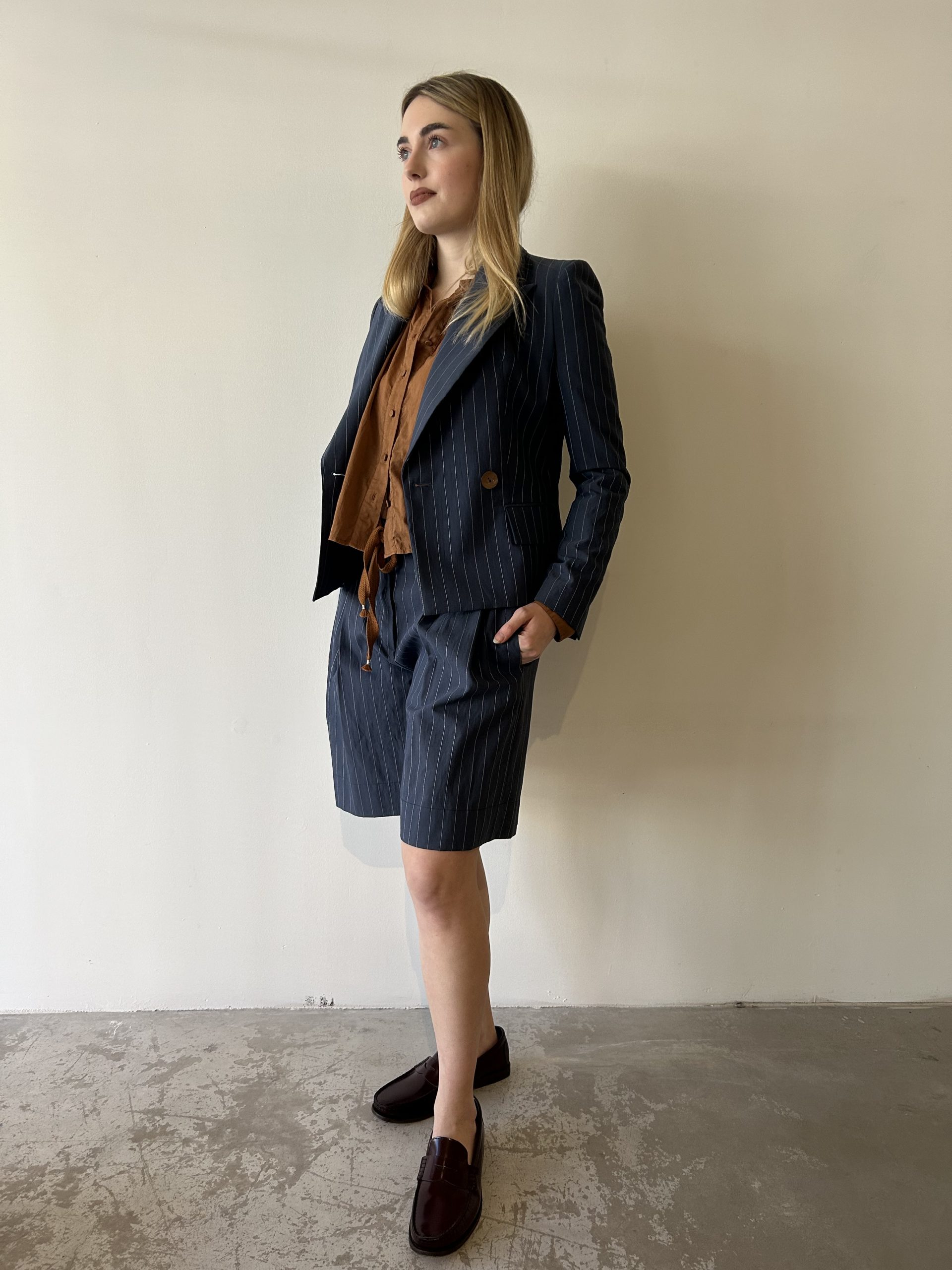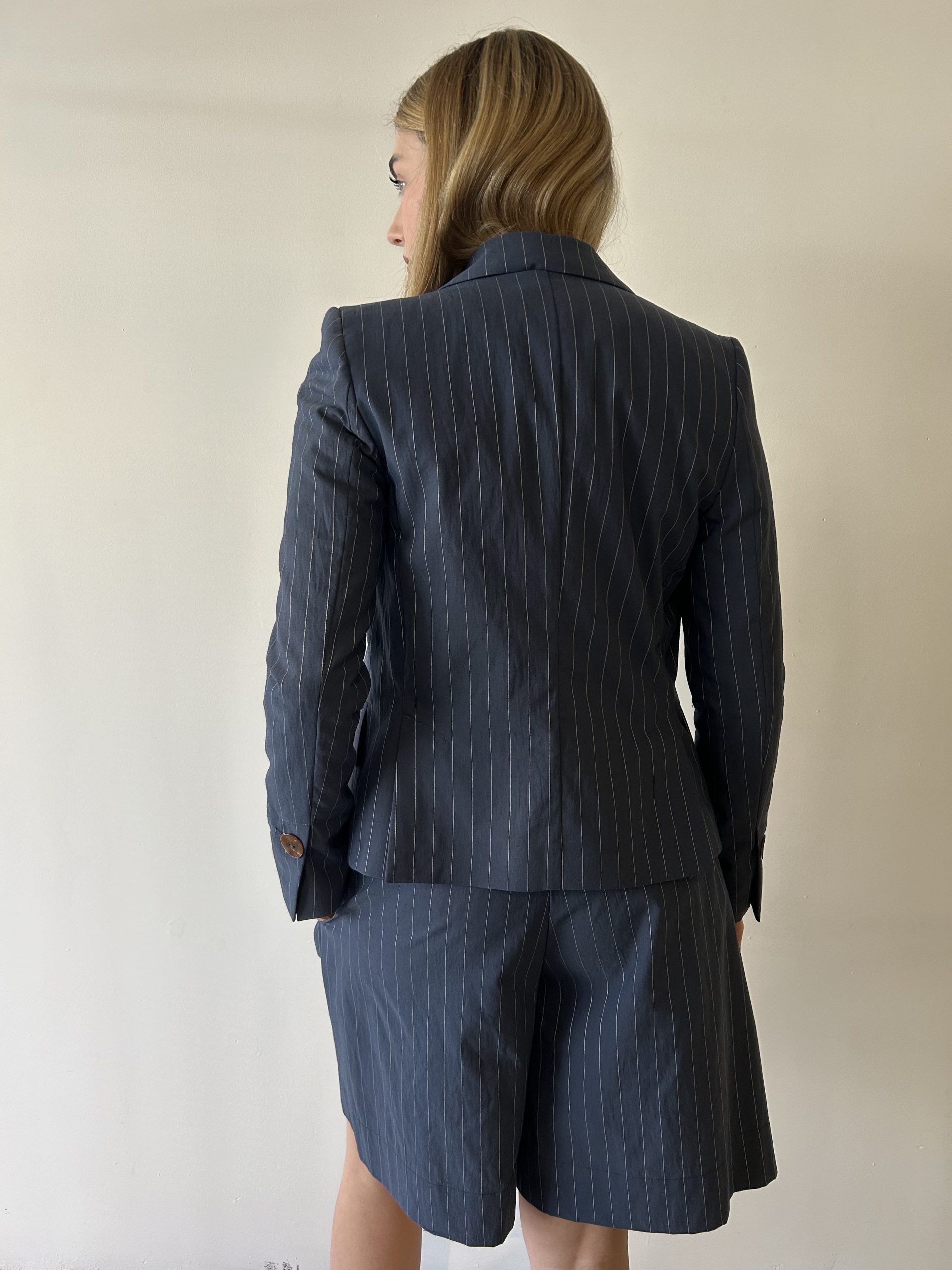 Bermuda gessato con coulisse. Vestibilità regolare.