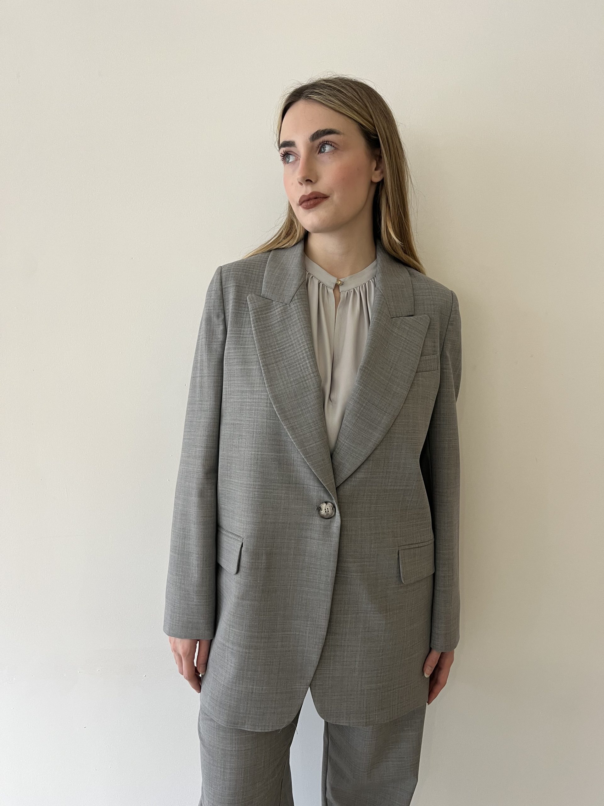 Blazer monopetto con stampa a quadretti tono su tono. Buona vestibilità.