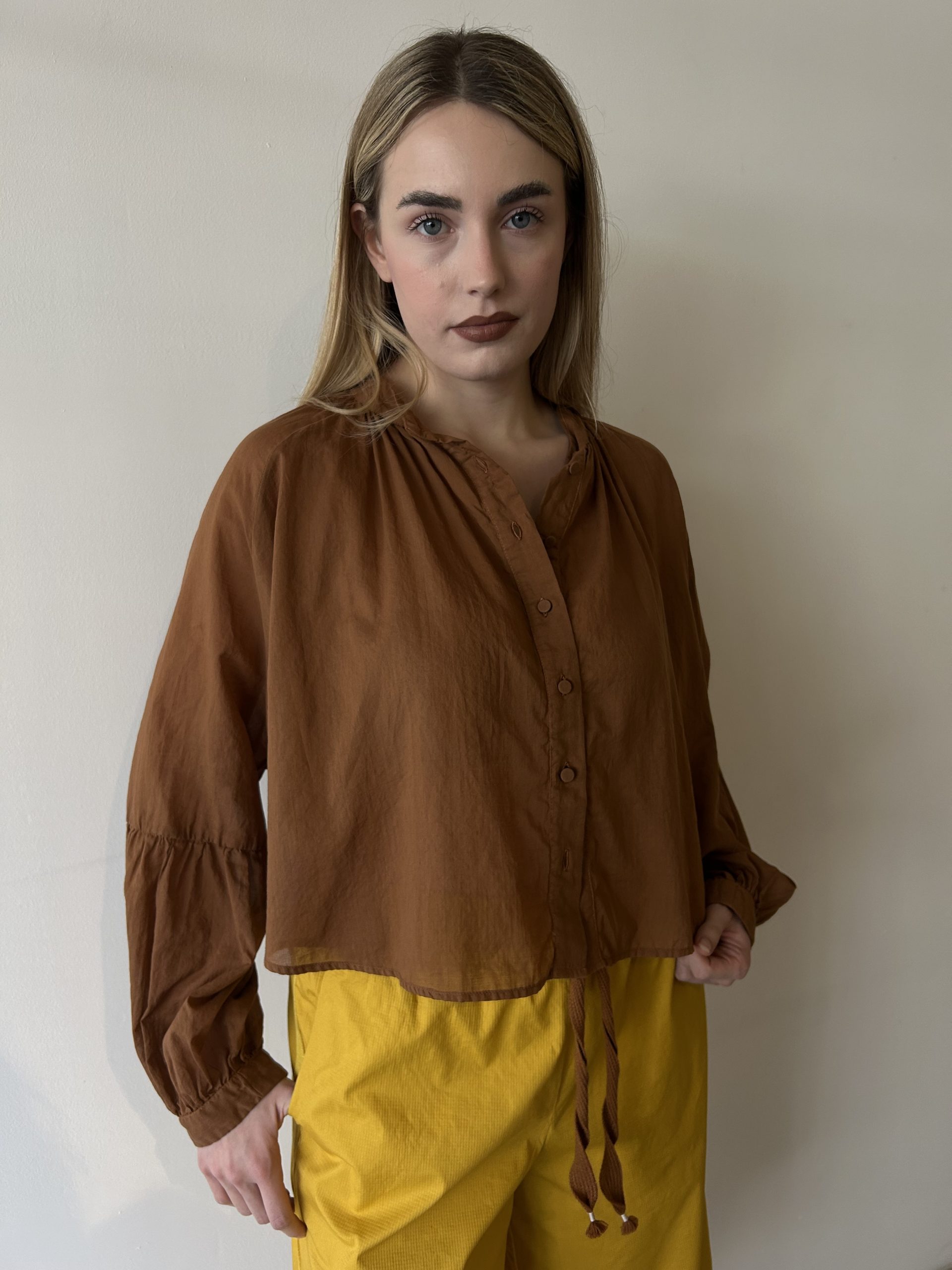 Blousa in mussola con maniche a palloncino. Buona vestibilità.