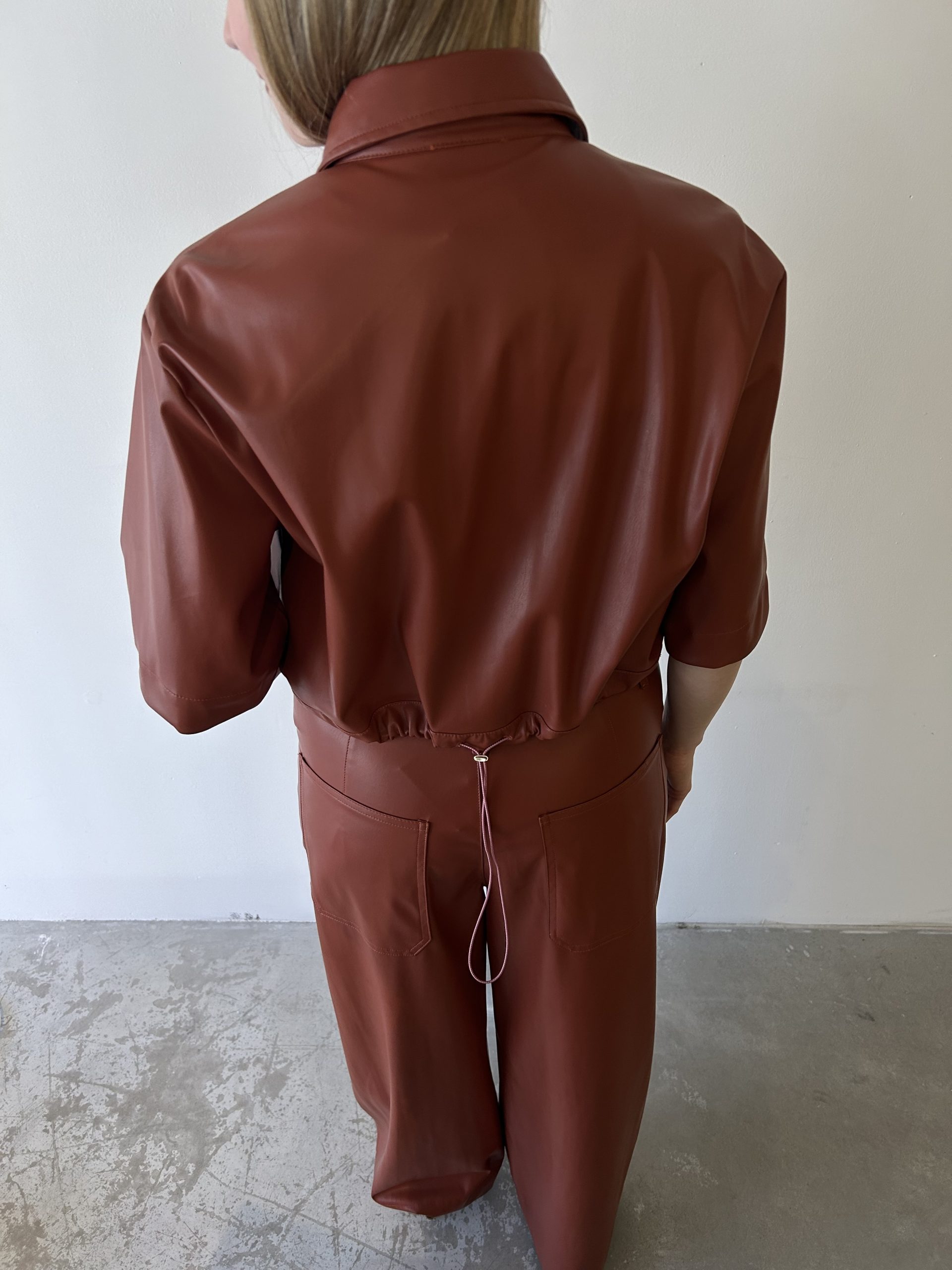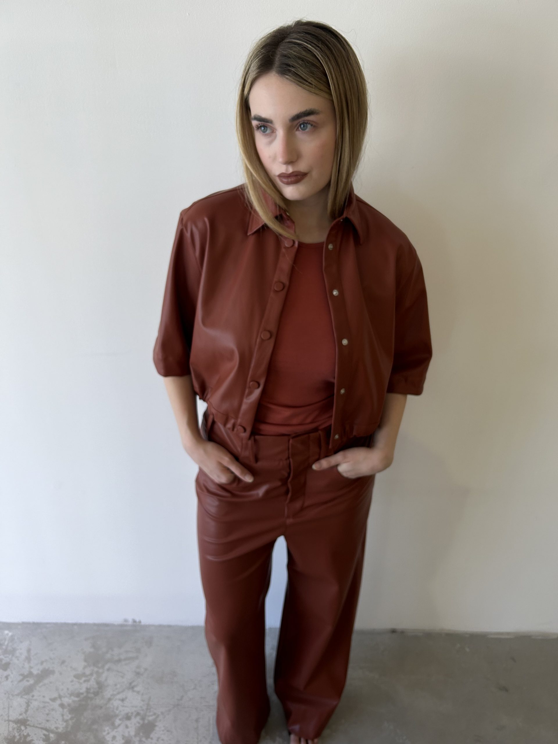 Camicia cropped in ecopelle. Vestibilità regolare.