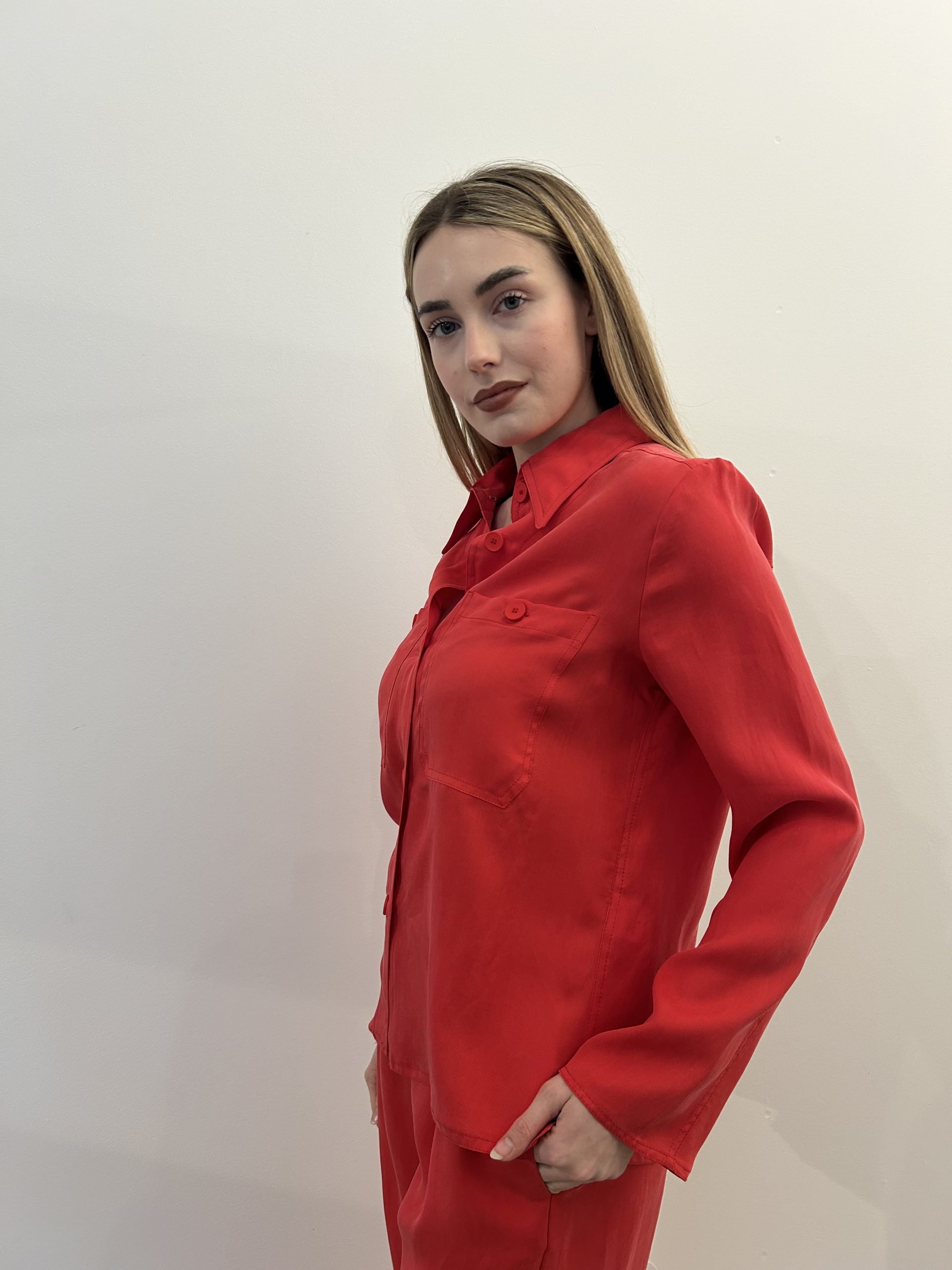 Camicia fluida con tasche. Vestibilità regolare.