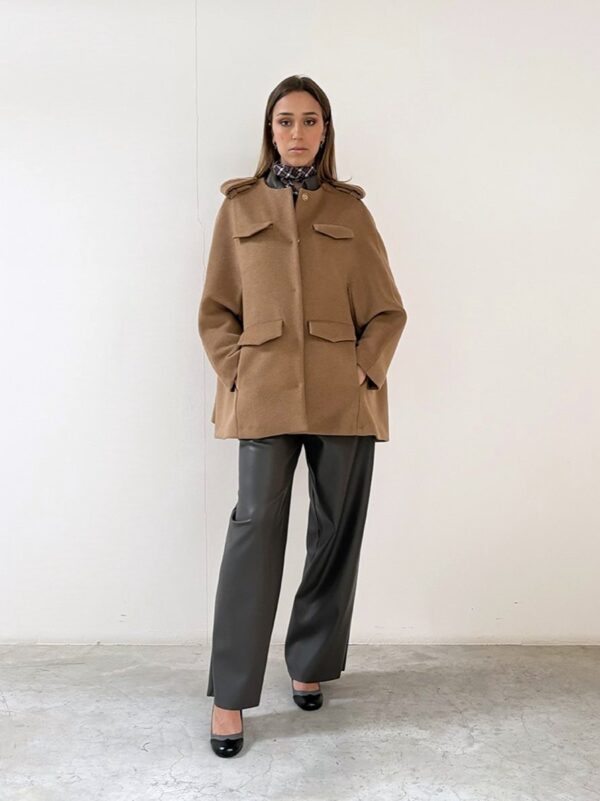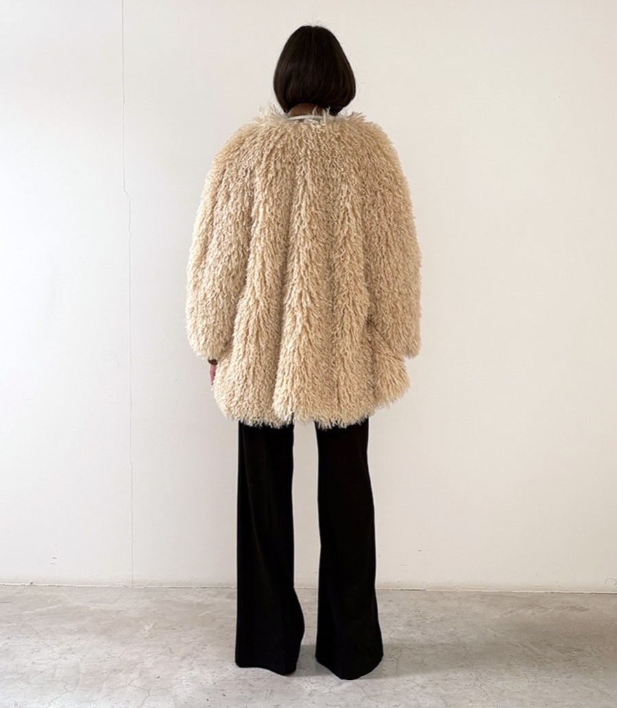 Eco pelliccia oversize con colletto e polsini elastici in contrasto.