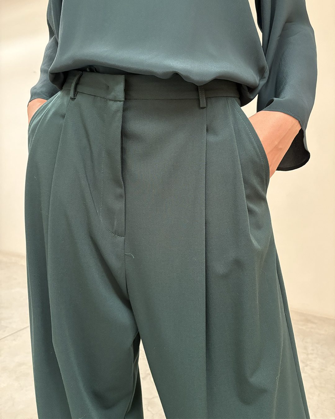 Pantalone balloon fluido con pences. Buona vestibilità.