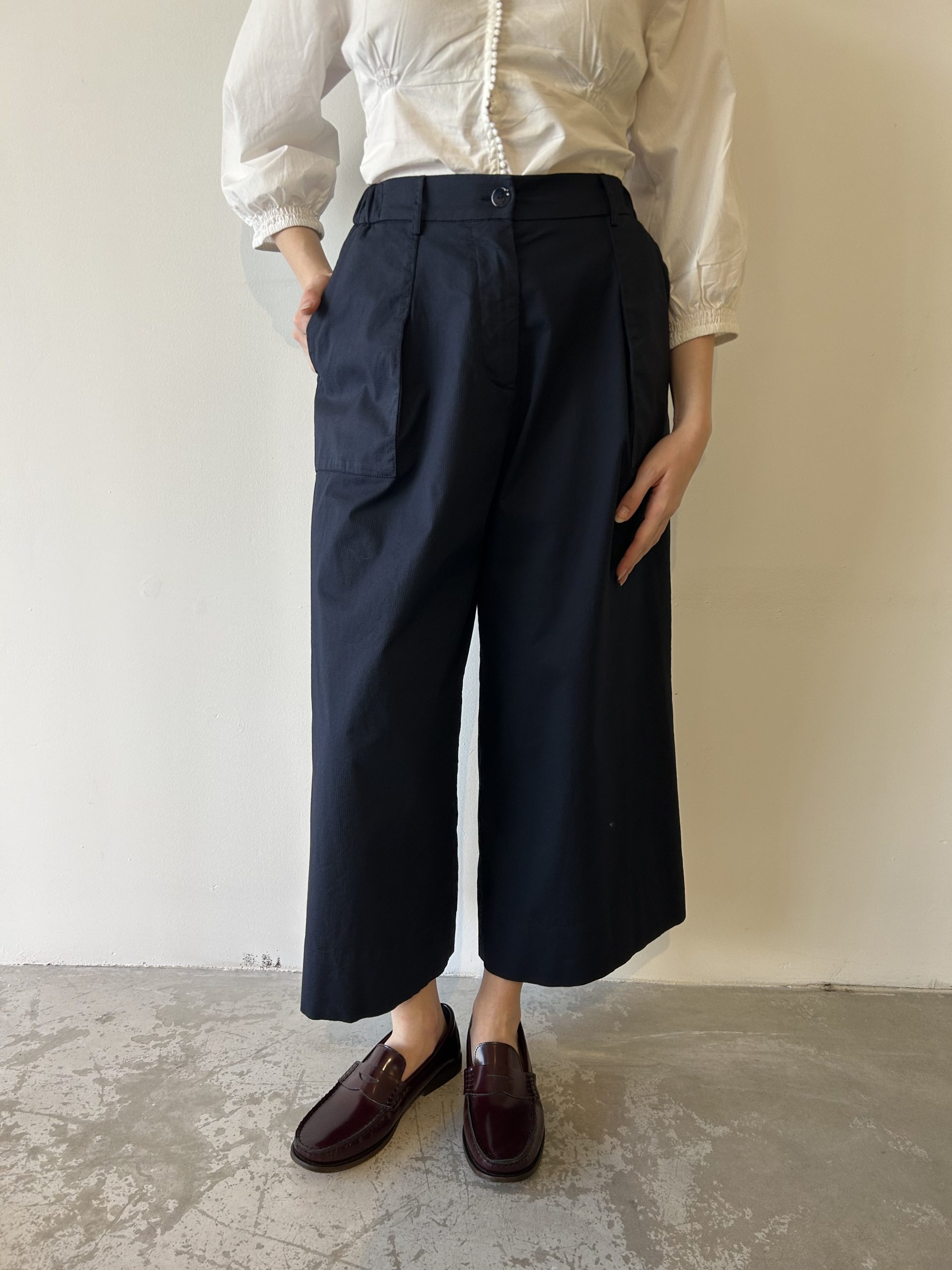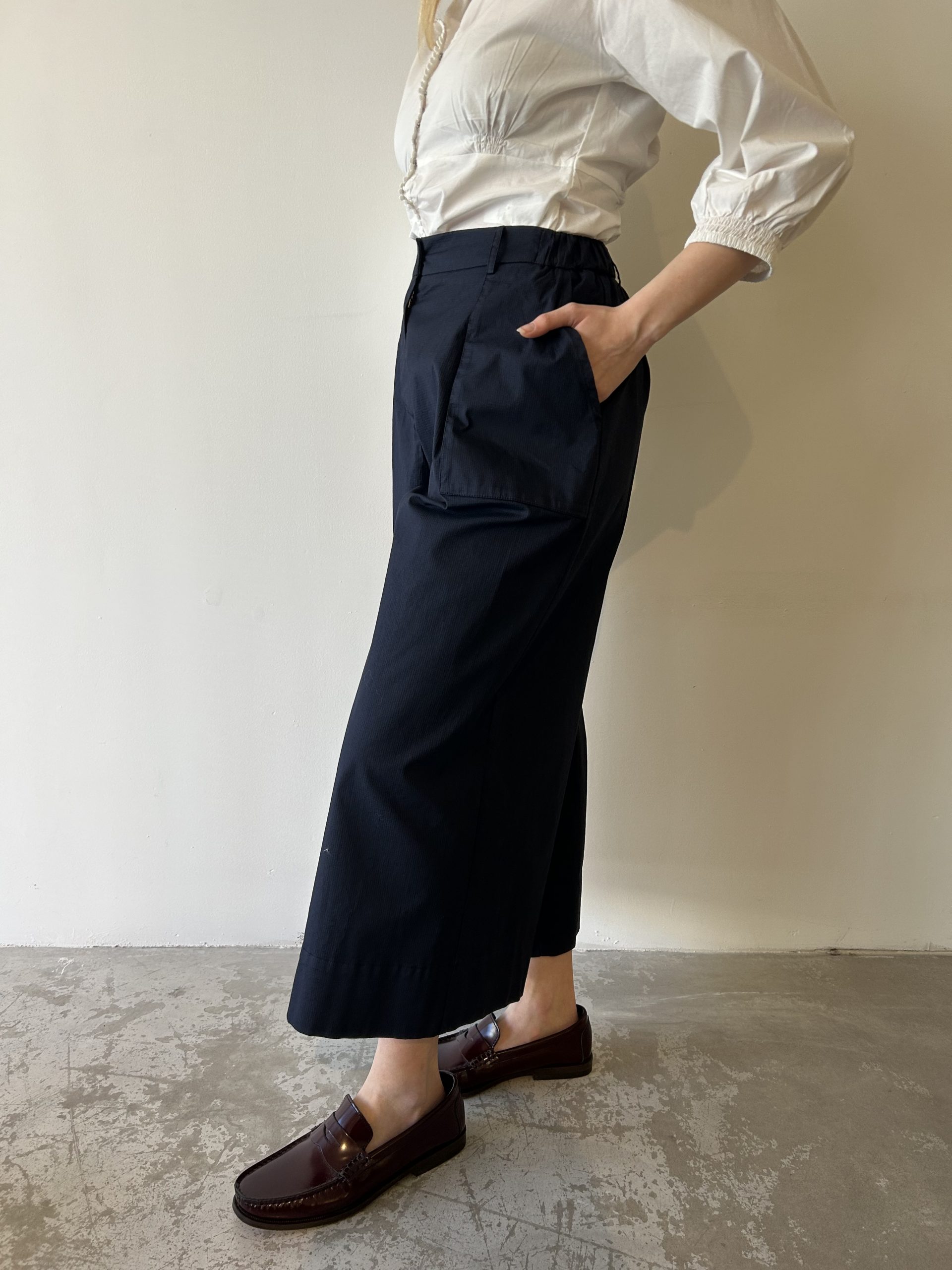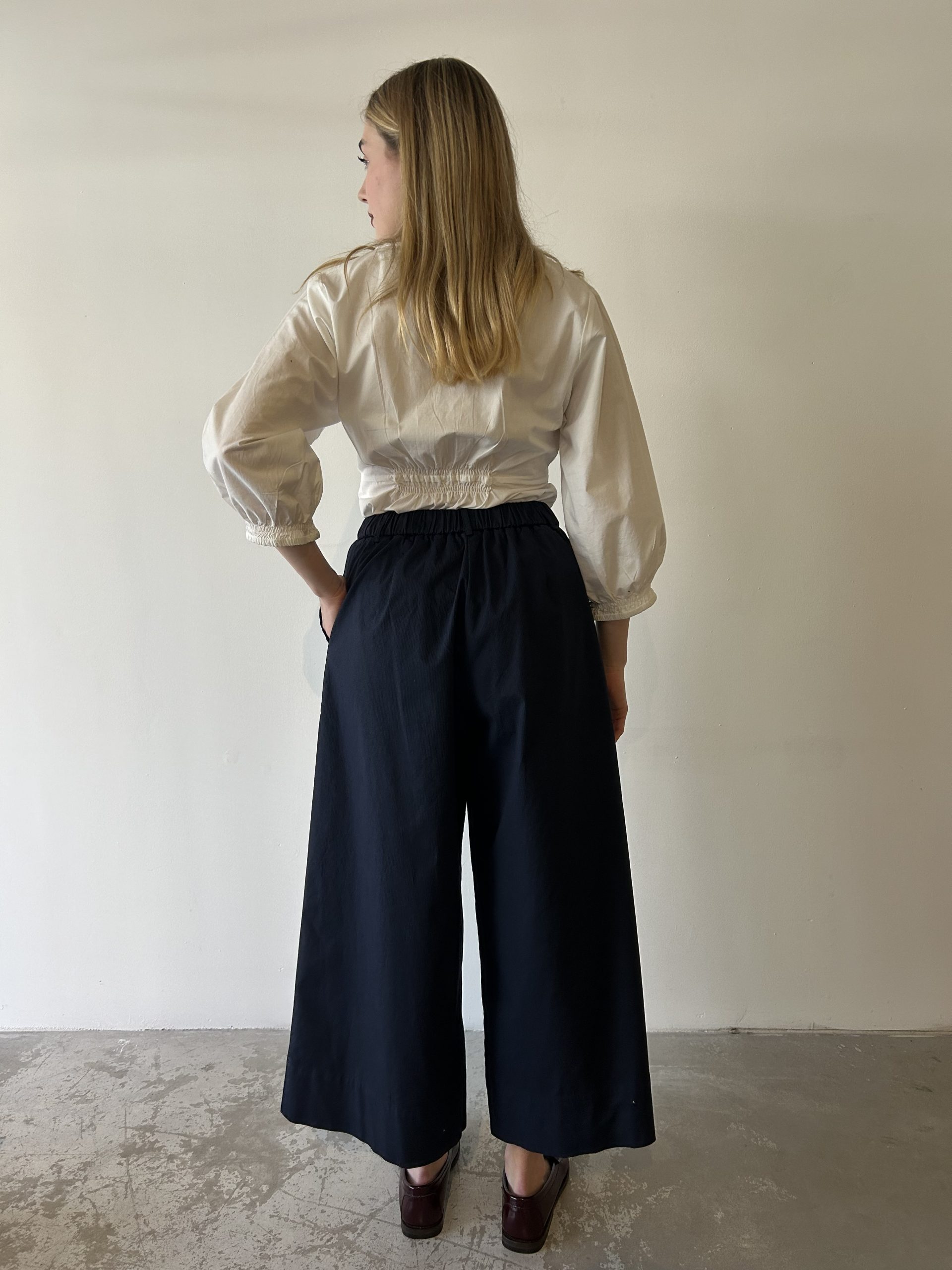Pantalone wide cropped leggero. Vestibilità regolare.