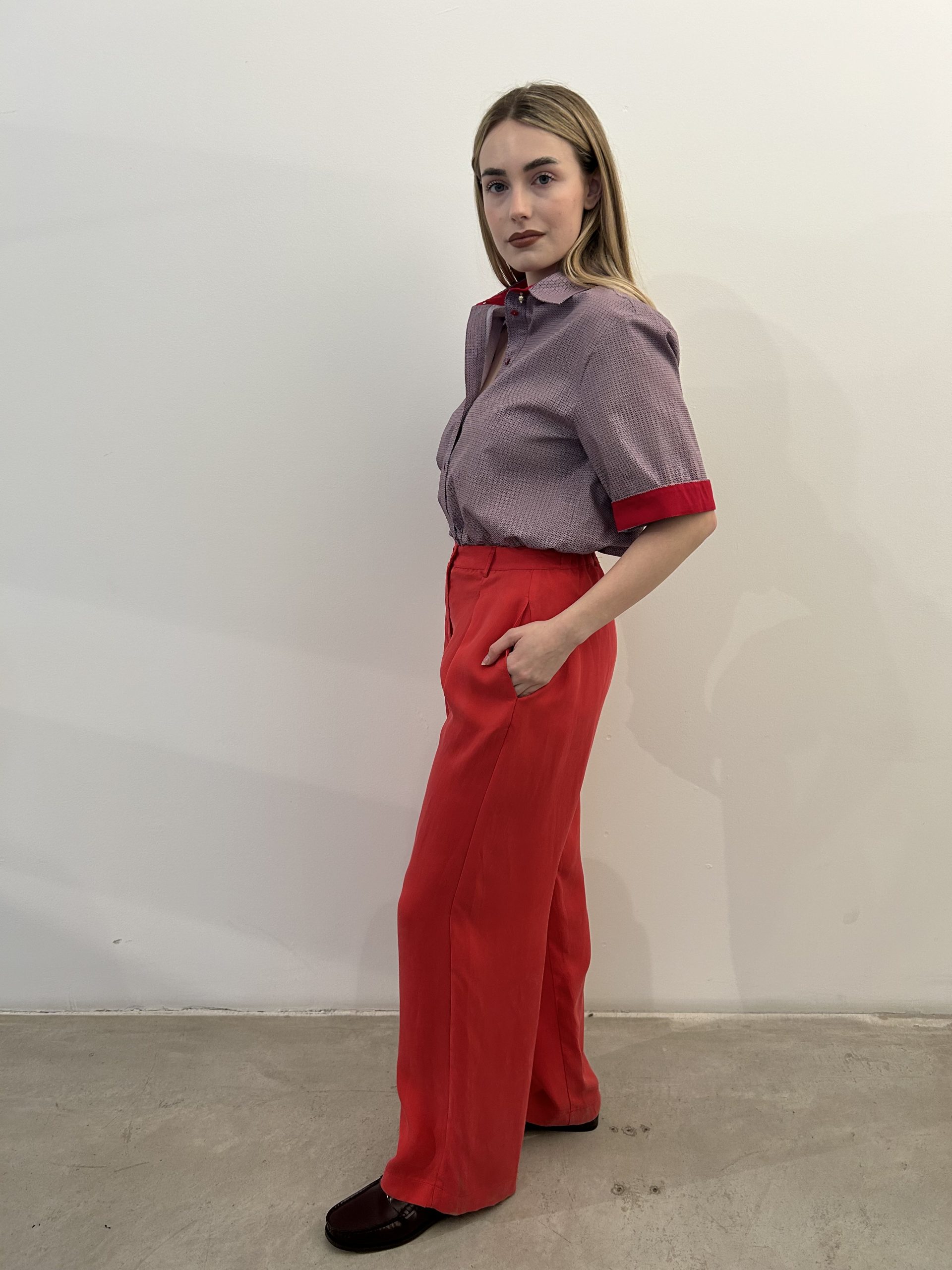 Pantalone rigido pences. Buona vestibilità.