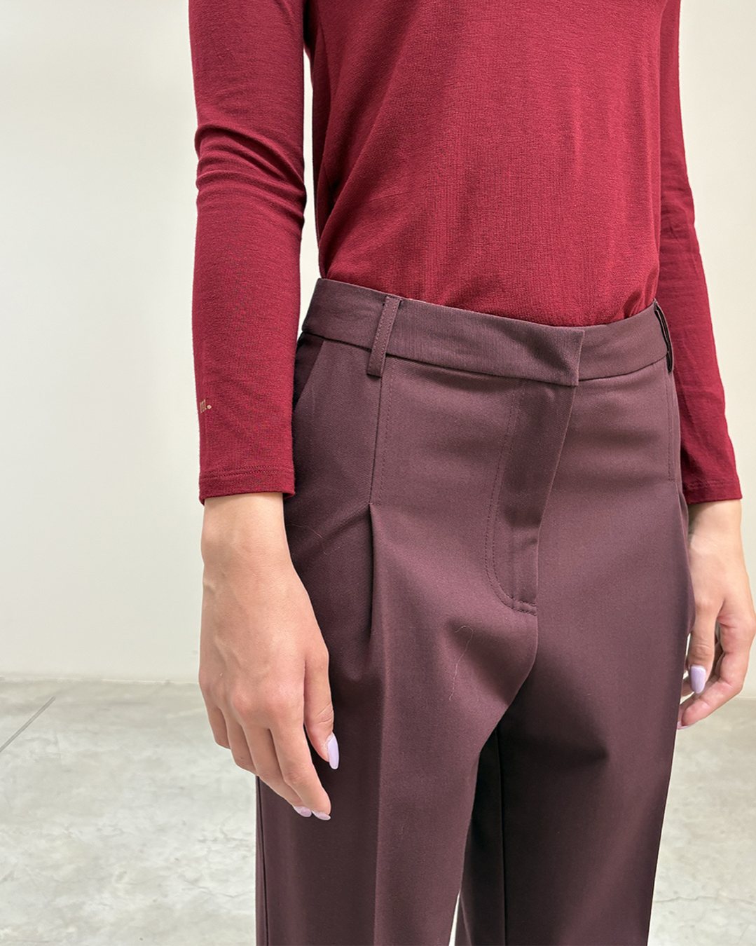 Pantalone a sigaretta cropped con pences. Vestibilità regolare.