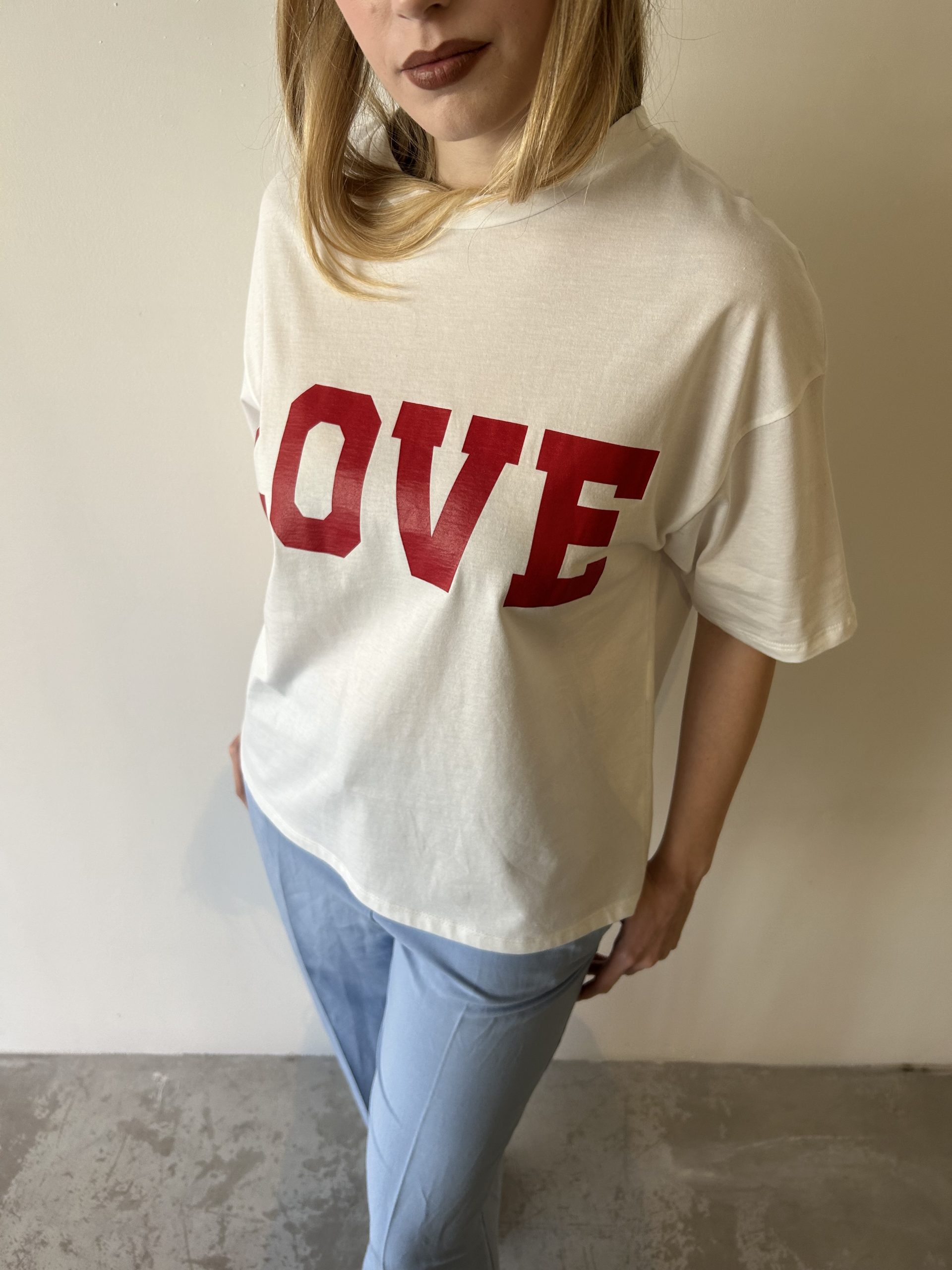 T-shirt LOVE oversize a scatoletta.