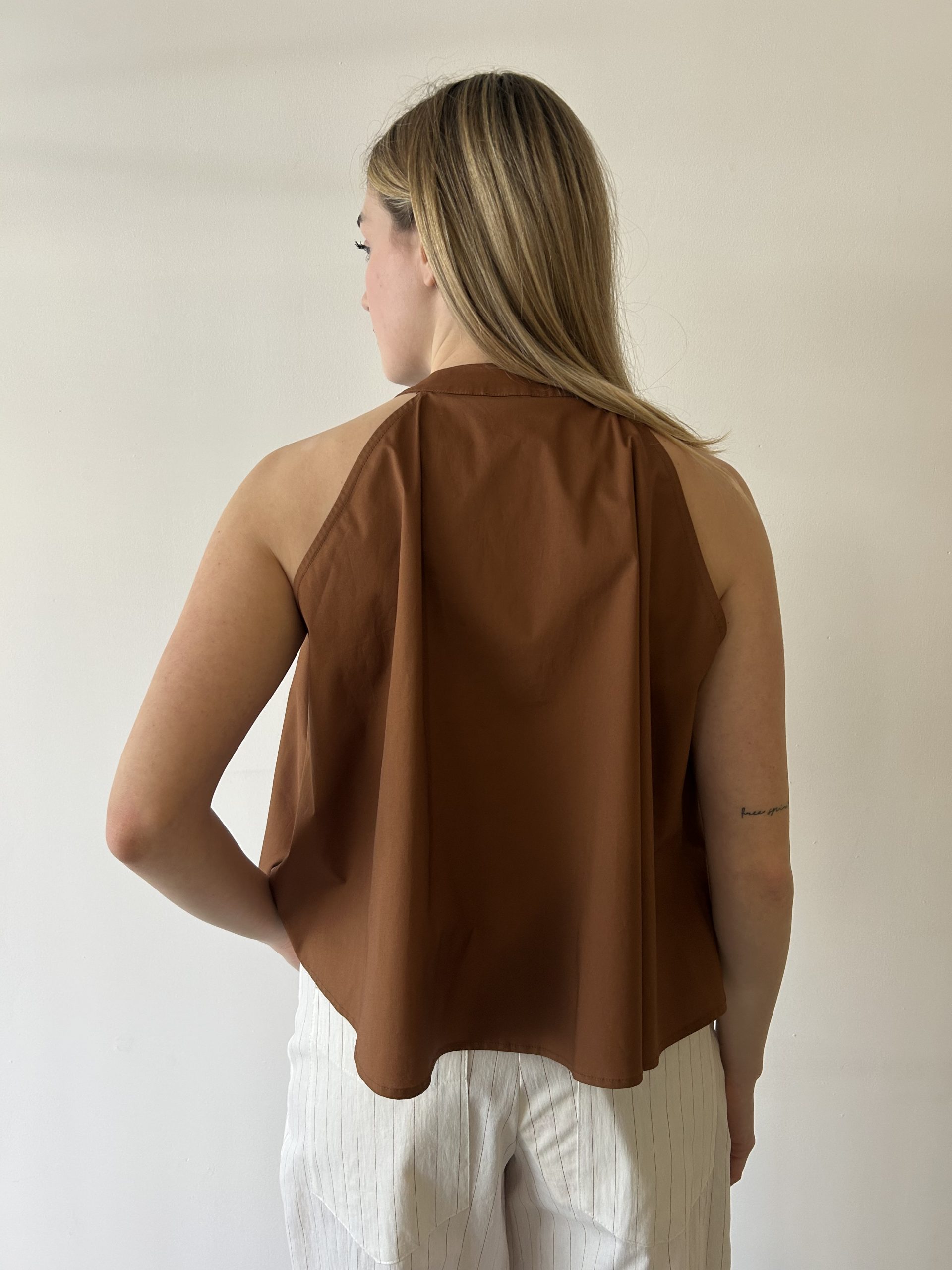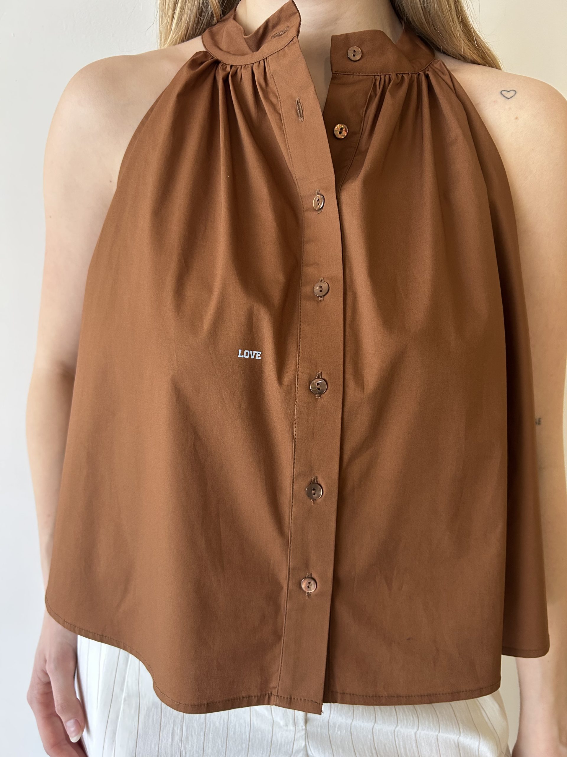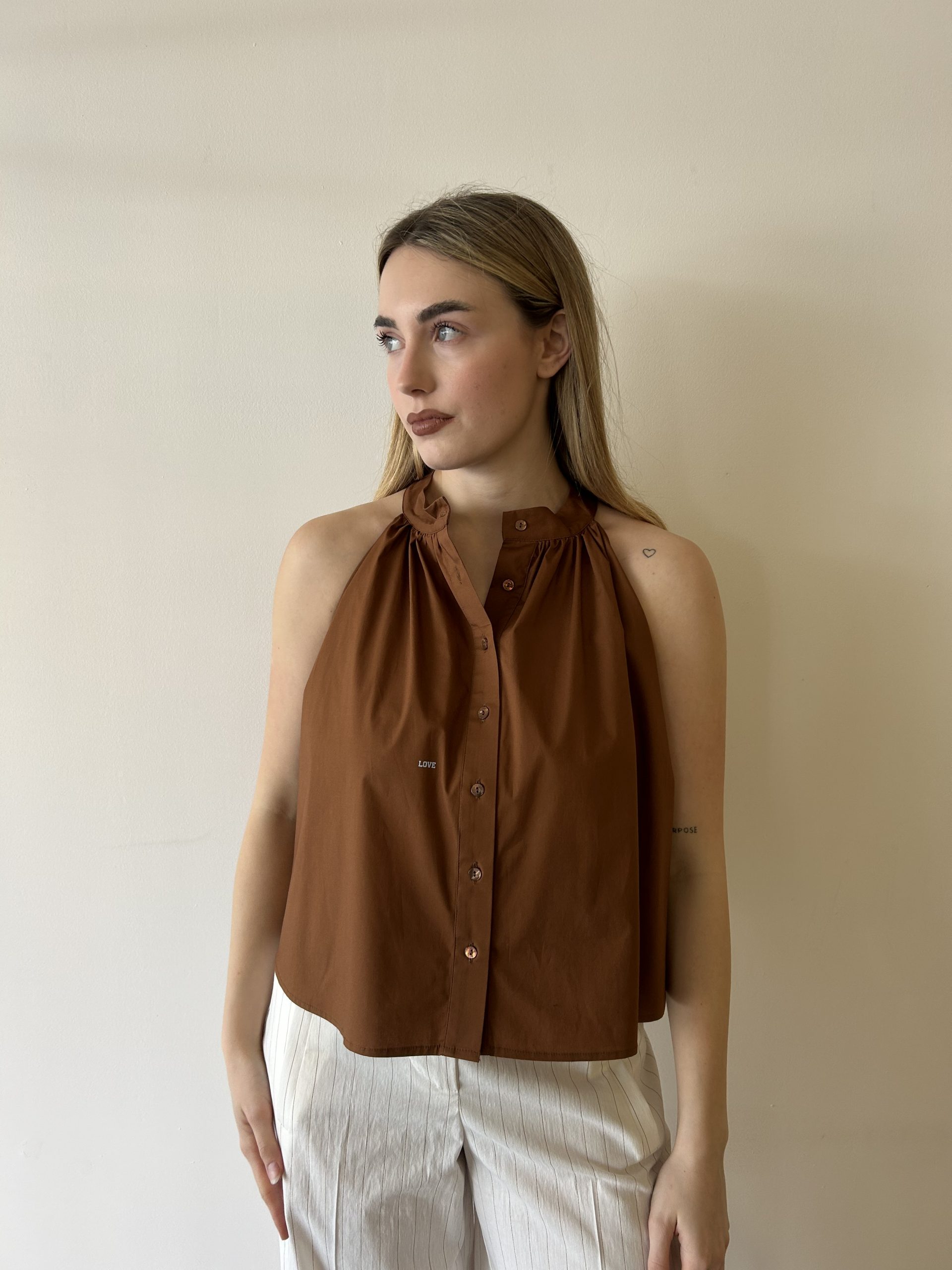 Top in popeline con scollo all’americana. Vestibilità regolare.